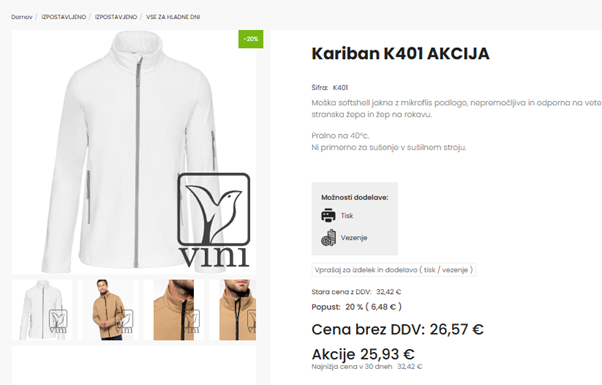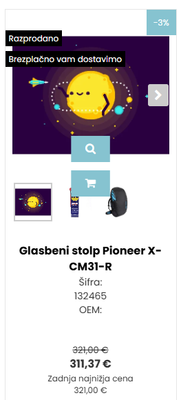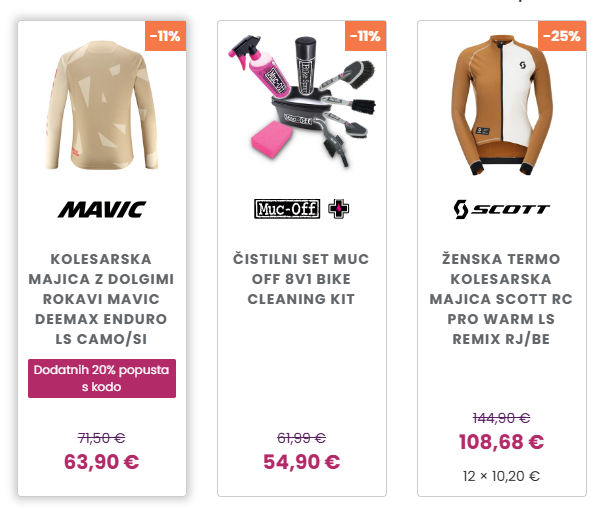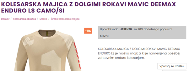 Oznaka "Koda za popust" na izdelkih: Če je za izdelek na voljo posebna koda za DODATNI popust na ročno izbrane izdelke, lahko to zdaj jasno označite. Besedilo (npr. "Na voljo koda za popust") se bo prikazalo tako na "kartici" izdelka v kategoriji kot na strani s podrobnostmi, kar stranke takoj opozori na možnost ugodnejšega nakupa.