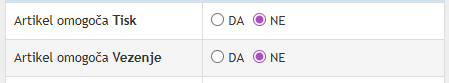 če omogočate TISK in VEZENJE pri artiklu lahko to nastavite v zavihku dodatno