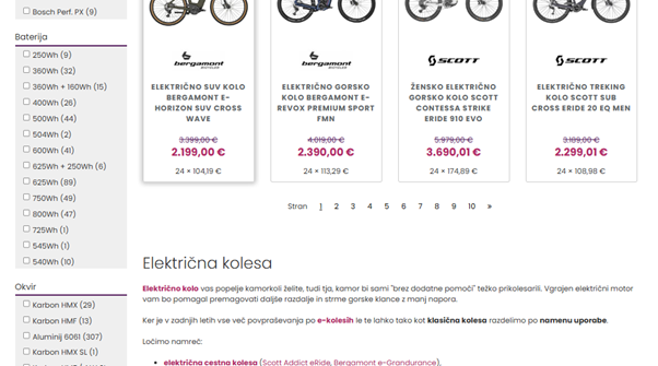 Samodejno nalaganje (Infinite Scroll): Ko obiskovalec doseže dno strani, se samodejno naloži naslednji nabor izdelkov (npr. naslednjih 10).